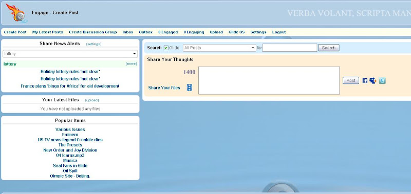 Glide contains a microblogging component which lets you post a message of up to 1,400 characters in length. This makes it a Twitter with substance - a microblgging tool that can actually be used for activities / work which are too involved for the 140 character marketing sound bite that Twitter has become. You can also embed media files and links in your posts with a single click (fantastic), set permissions to control public / private, and