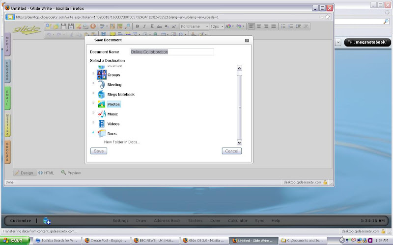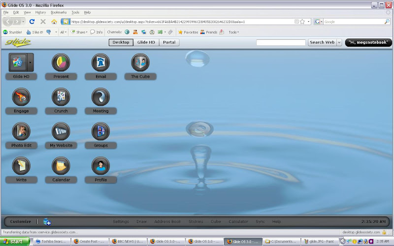 Ability to connect to the Glide OS and have access to a suite of online collaboration tools (document writer, calendar, presentation software, photo editor, chat, bookmarking tool, web site authoring, etc.). The online collaboration workspace is called Meeting, and gives the user the control to invite, share, view, edit almost any type of file - yes, it does not have to be a native, proprietary file format for you to be able to share, view and edit, and this of course includes multi-media files.